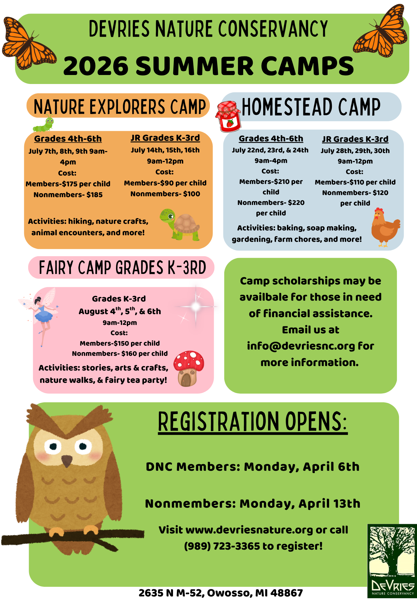 If registering more than one child per camp, please call our office at (989) 723-3365 to register over the phone!